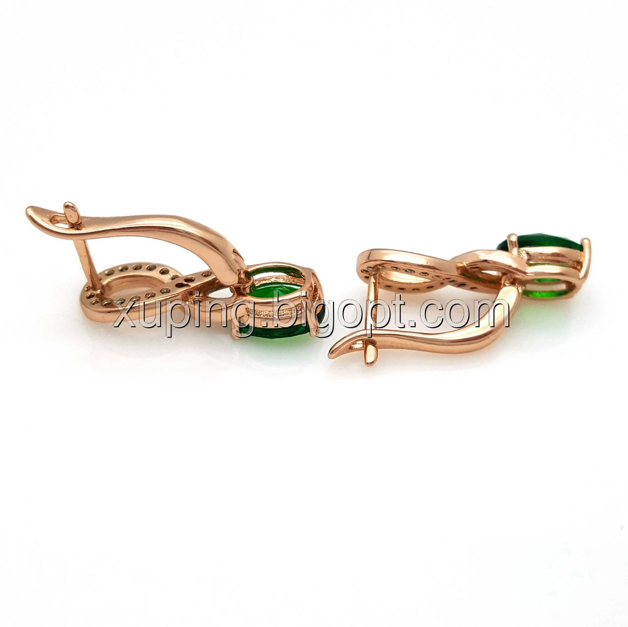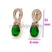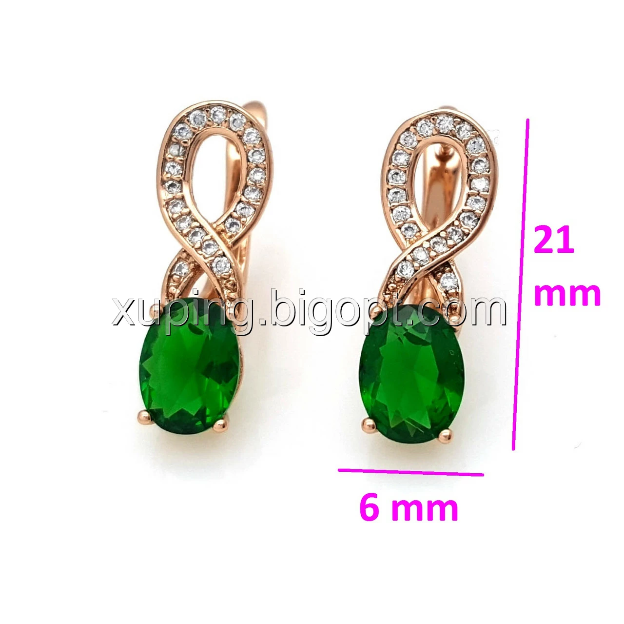 Сережки Незкінченність з зеленим цирконієм, англ.замок, позолота Xuping, 14К