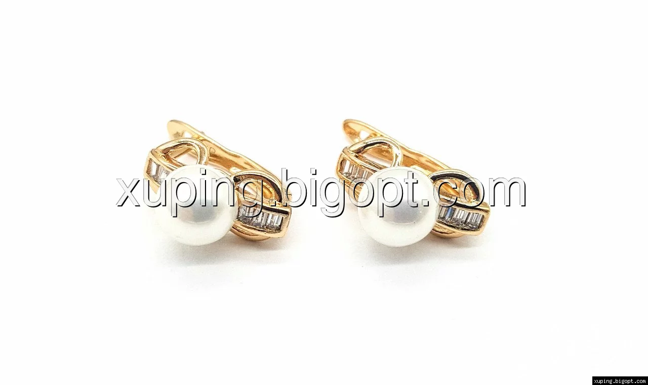Серьги Бесконечность, с Жемчугом и багетным цирконием, англ.замок, позолота
