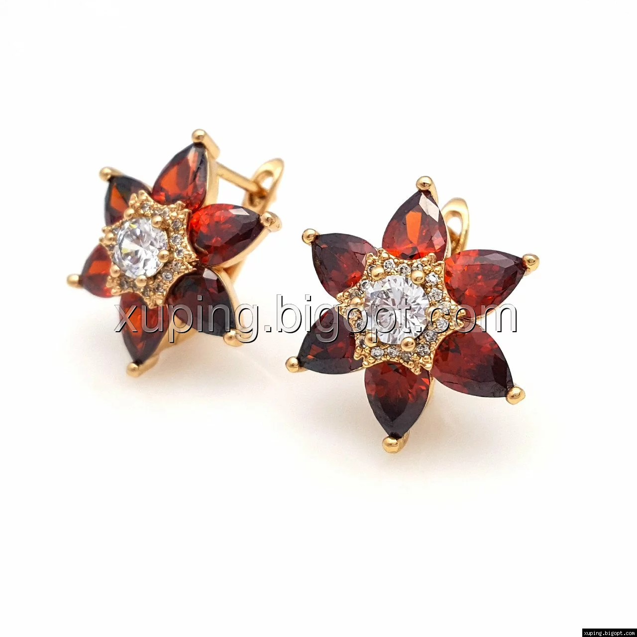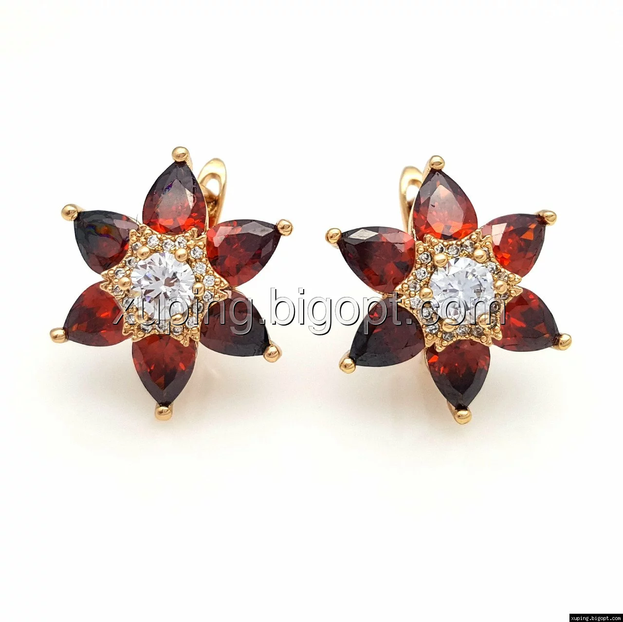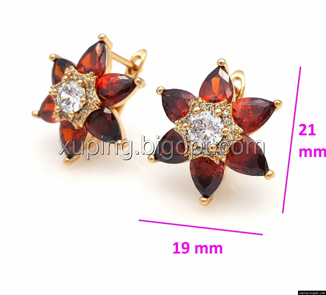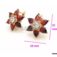 Сережки Квітка, з червоним цирконієм, англ.замок, позолота Xuping ,18К