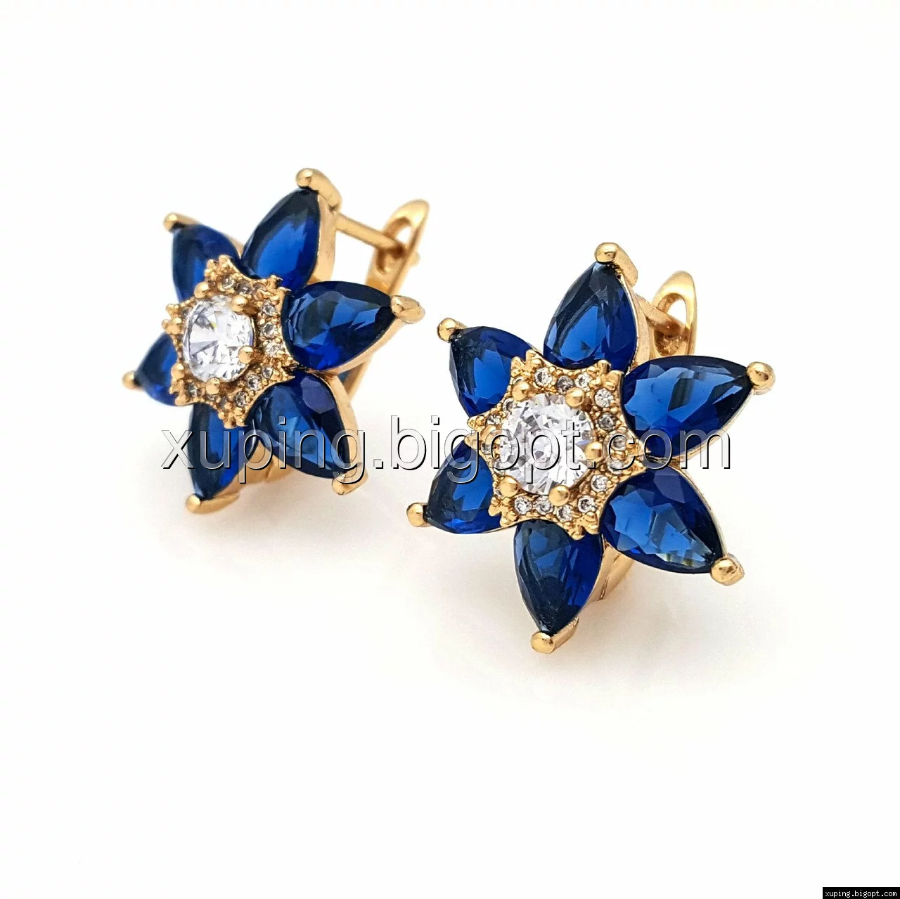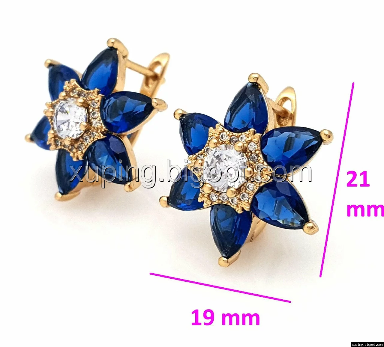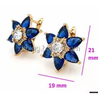 Сережки Масивна Квітка з синім цирконієм, англ.замок, позолота Xuping, 18К