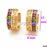 Серьги Две Дорожки, с разноцветным цирконием и греческим узором, позолота Xuping