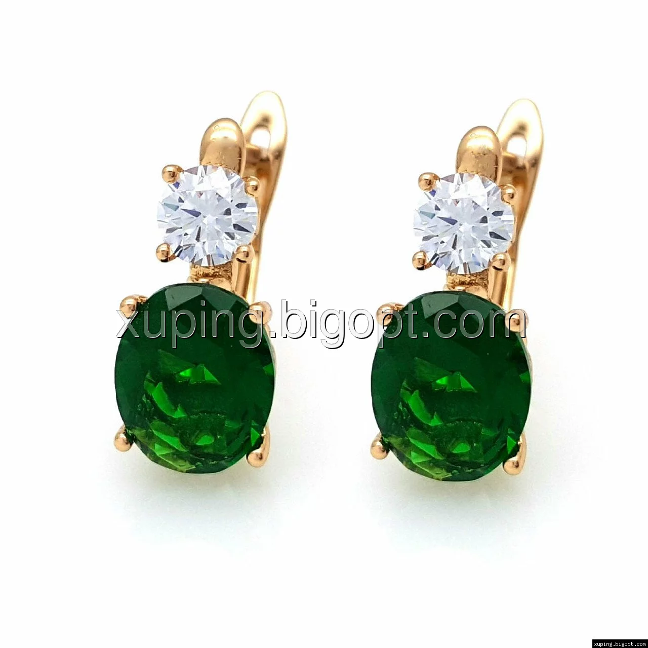 Серьги Зеленый цирконий, англ.замок, позолота Xuping