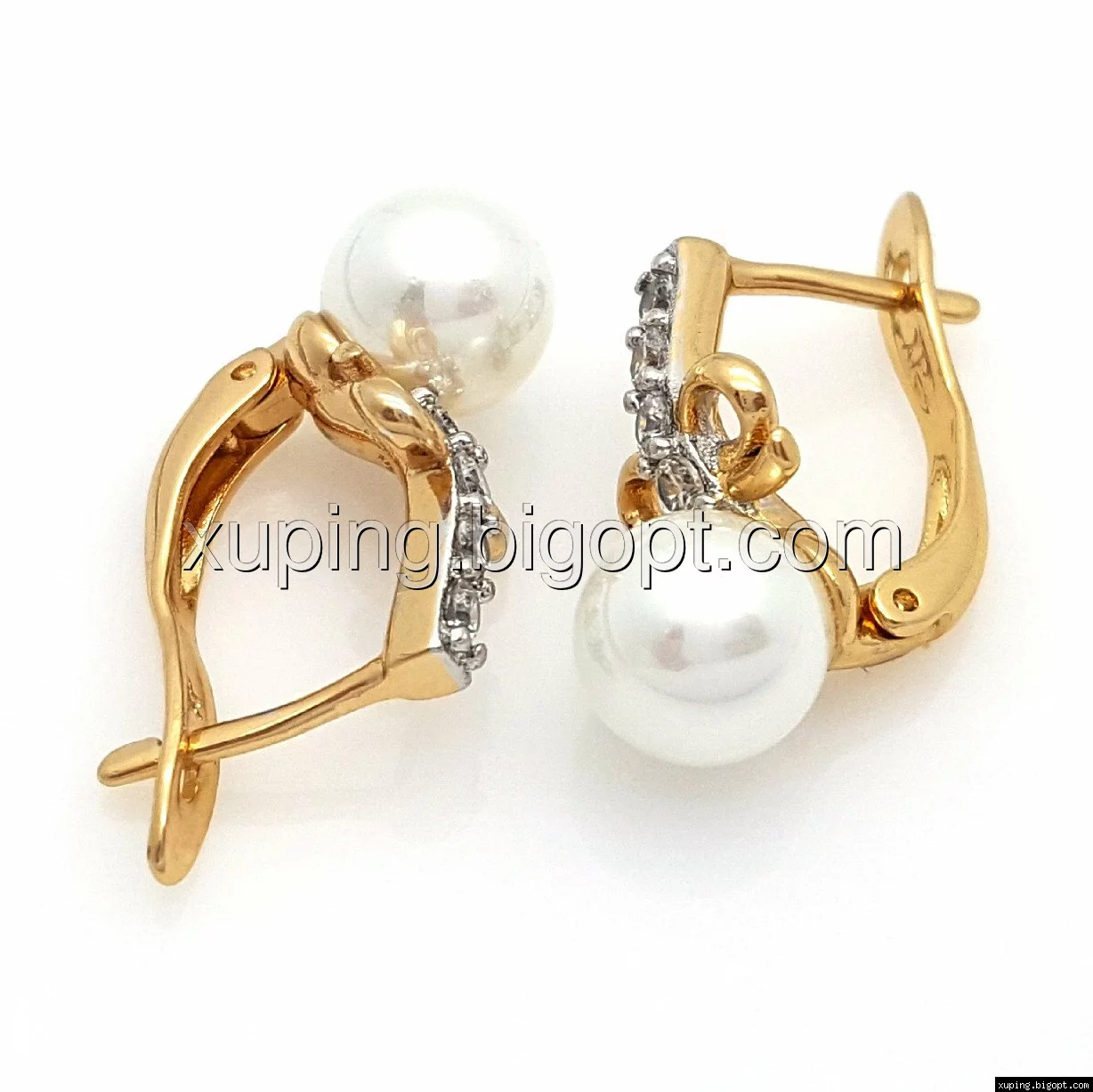 Серьги Жемчужина с дорожкой циркония, англ.замок, позолота+родий