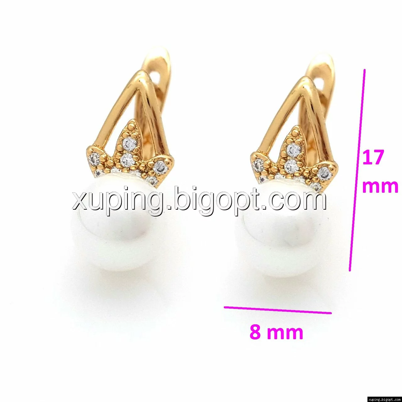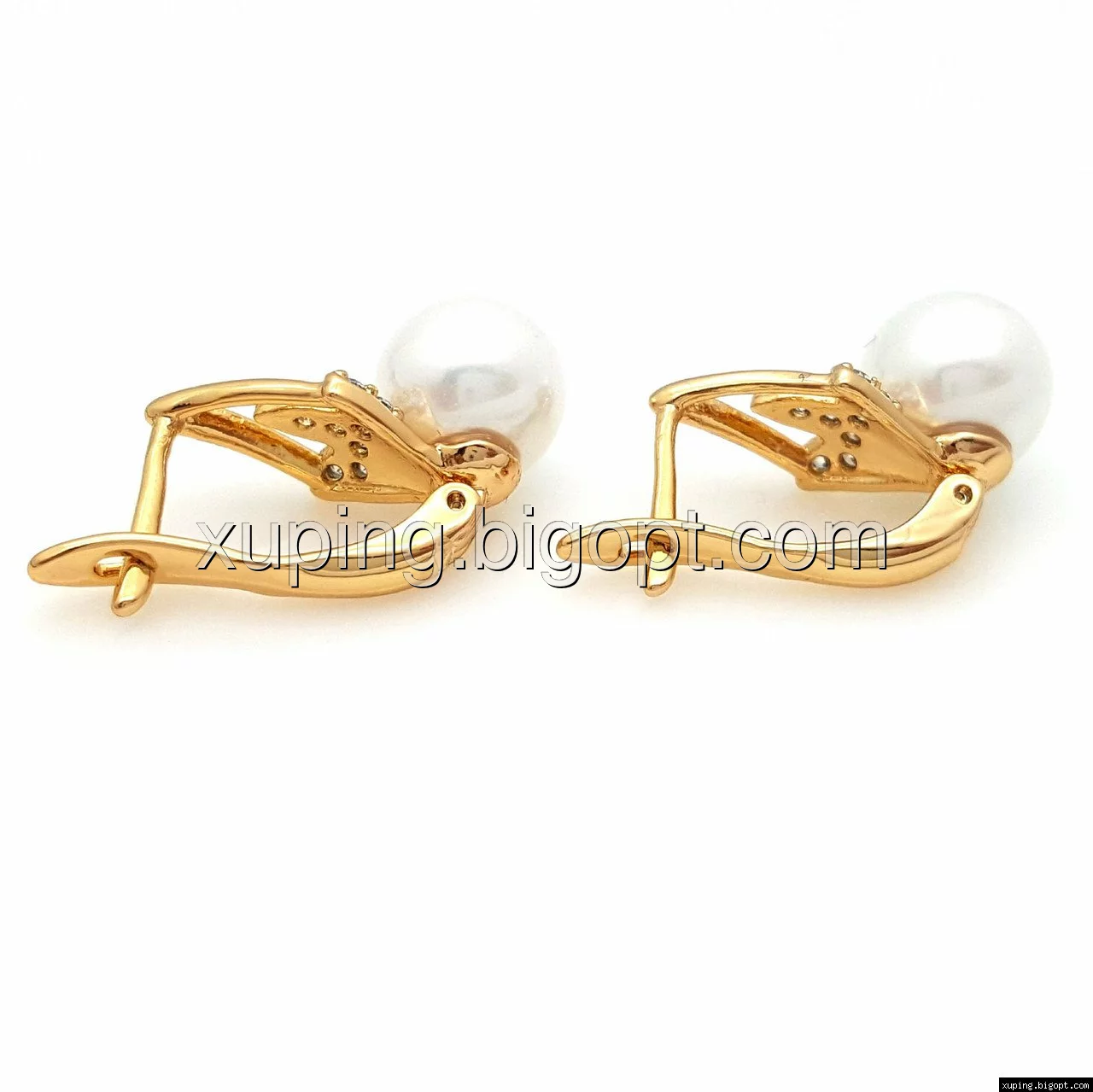 Серьги Жемчужина с короной, вставка цирконий, англ.замок, позолота Xuping