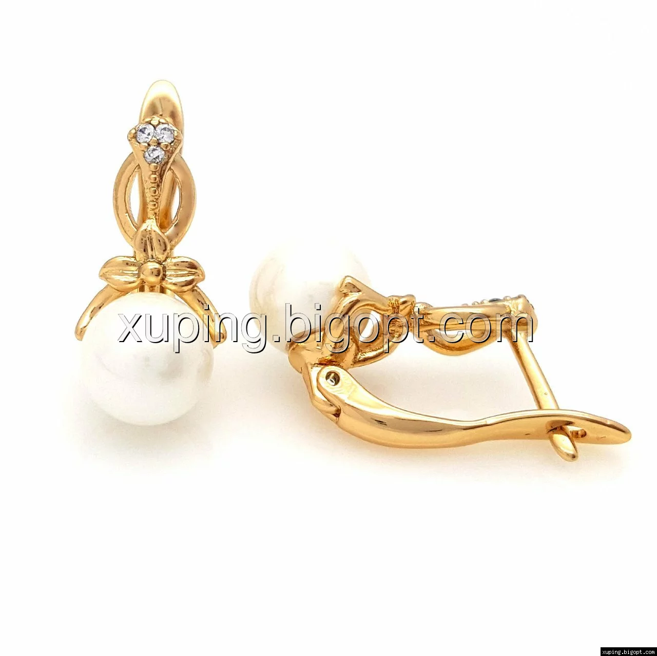 Серьги Жемчужина с цветком, вставка цирконий, англ.замок, позолота Xuping