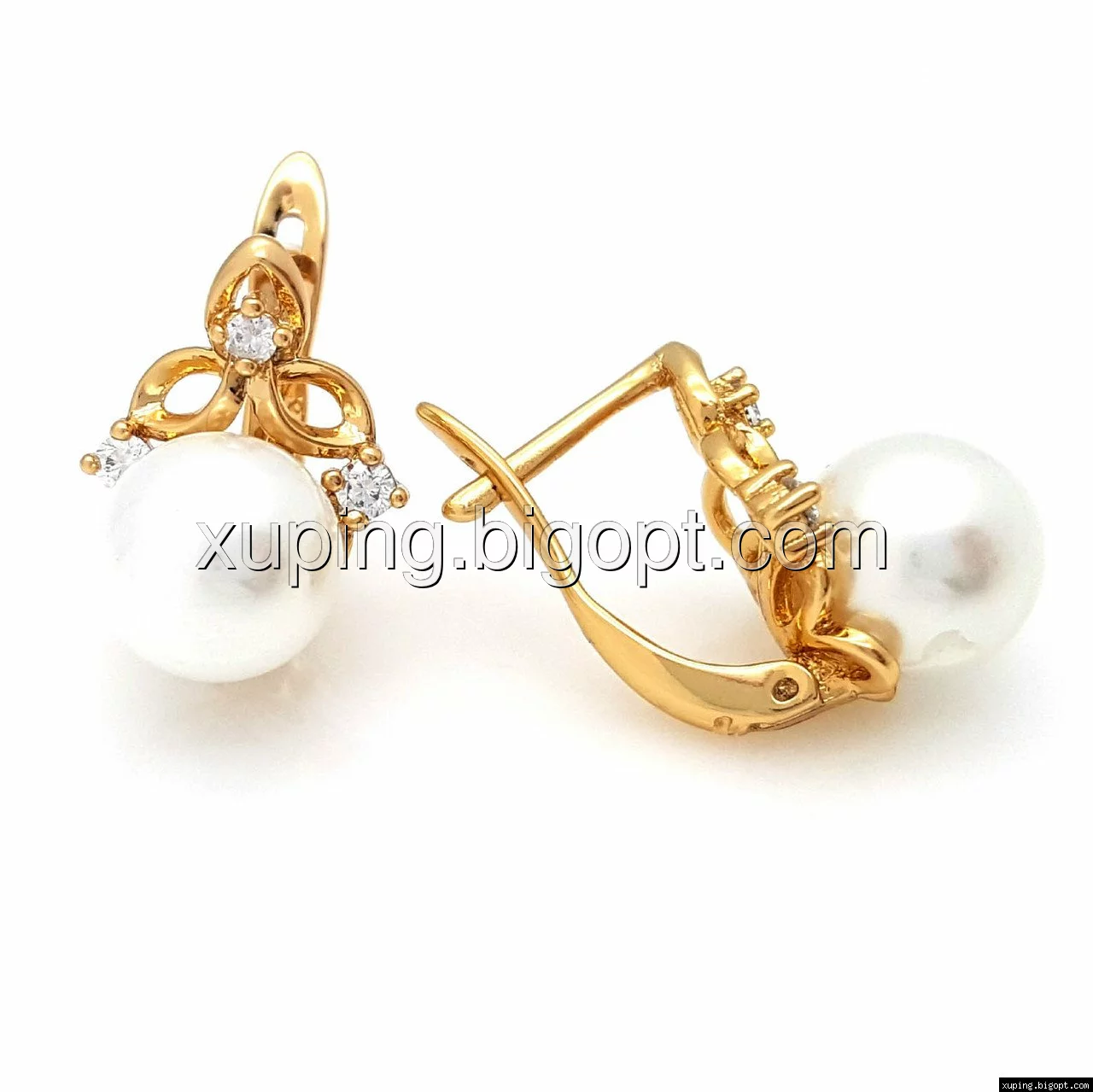 Серьги Жемчужинка с Цветком, вставка цирконий, англ.замок, позолота Xuping
