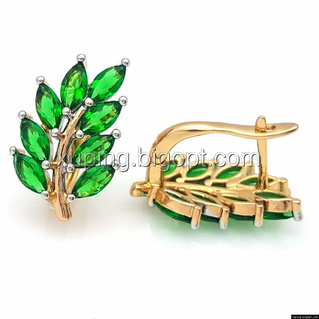 Серьги Веточка 704559 с зеленым цирконием, англ.замок, позолота+родий