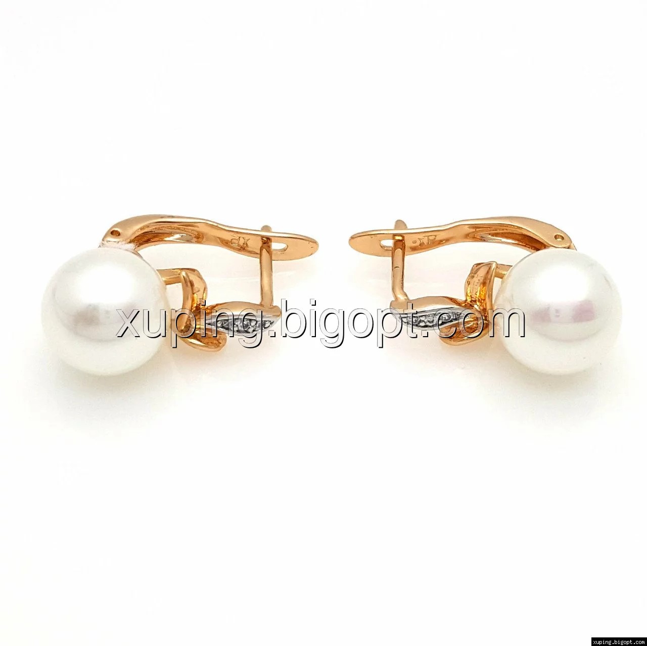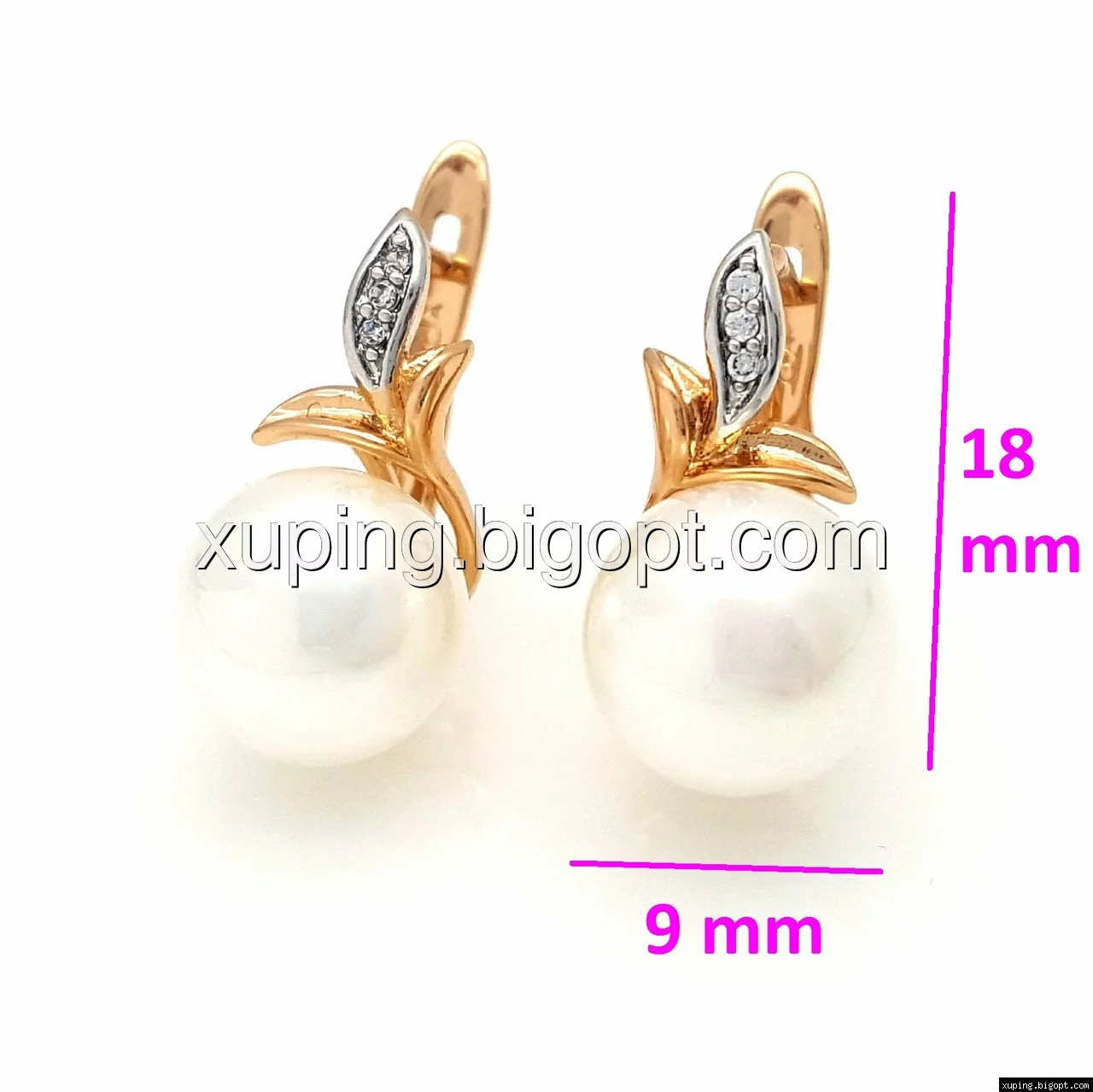 Серьги Веточка с Жемчугом, англ.замок, позолота+родий Xuping
