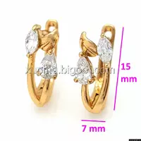 Серьги Веточка, с цирконием, англ.замок, позолота Xuping