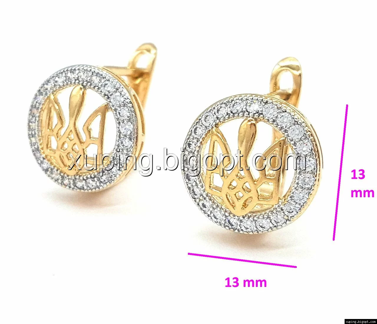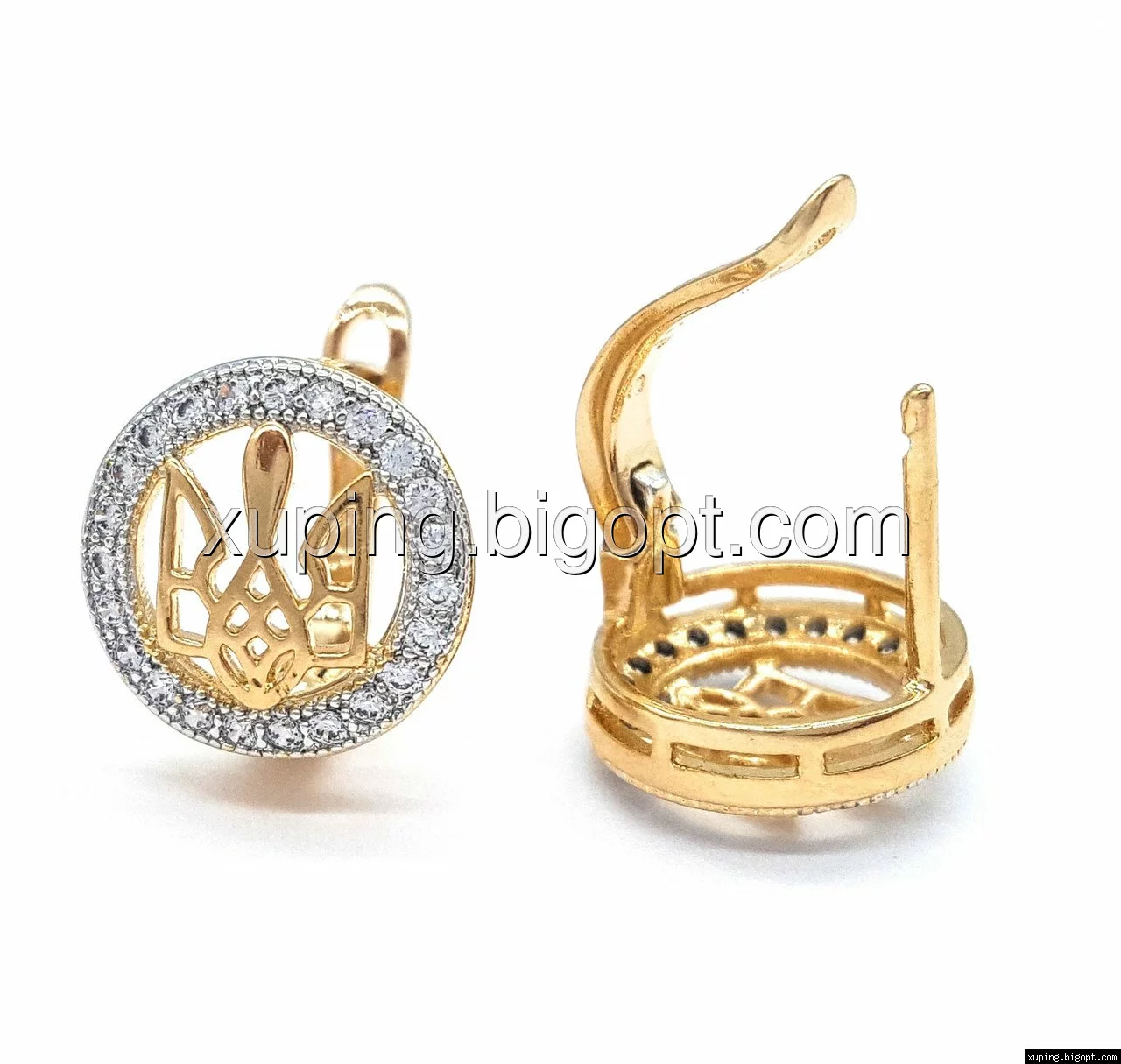 Серьги Герб Украины, с россыпью циркония, англ.замок, позолота+родий