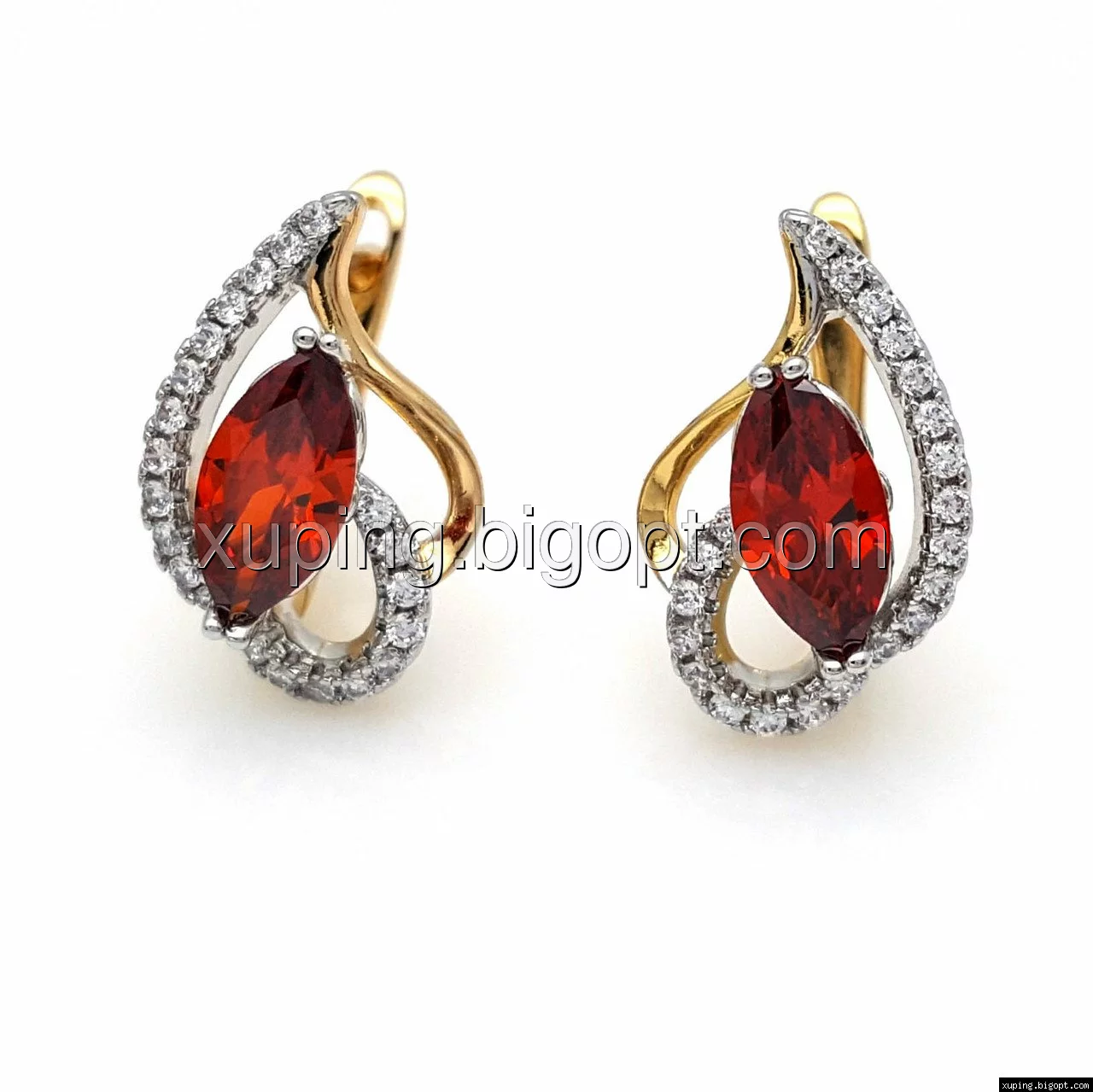 Серьги Фигурная Капелька с красным цирконием, англ.замок, позолота+родий