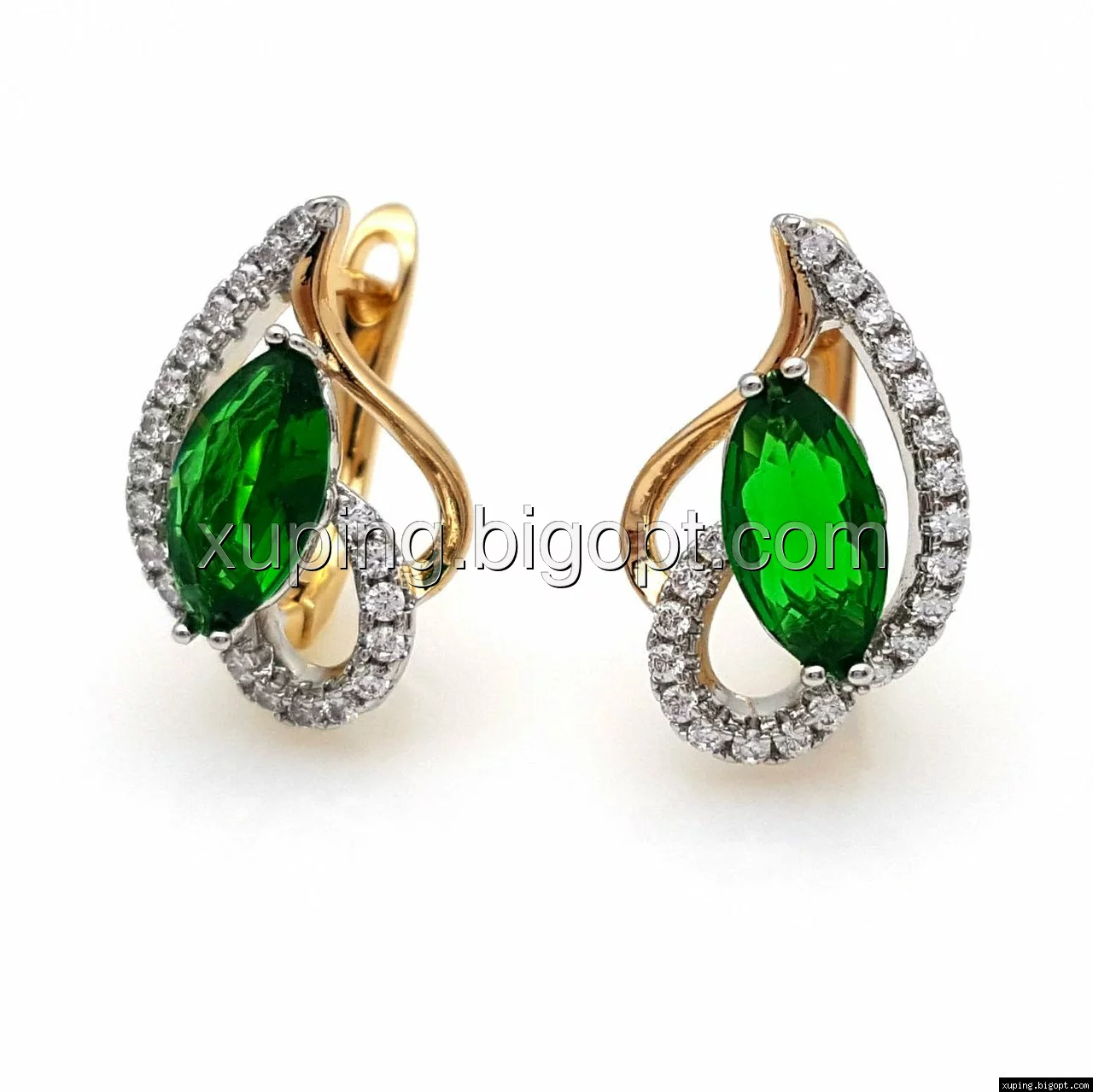 Серьги Фигурная Капелька, с зеленым цирконием, англ.замок, позолота+родий