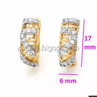 Сережки Грецький різбленням та камінчиками, англ.замок, позолота+родій, 18К
