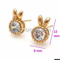 Серьги гвоздики 704580 Кружок циркония с ушками, позолота 18К