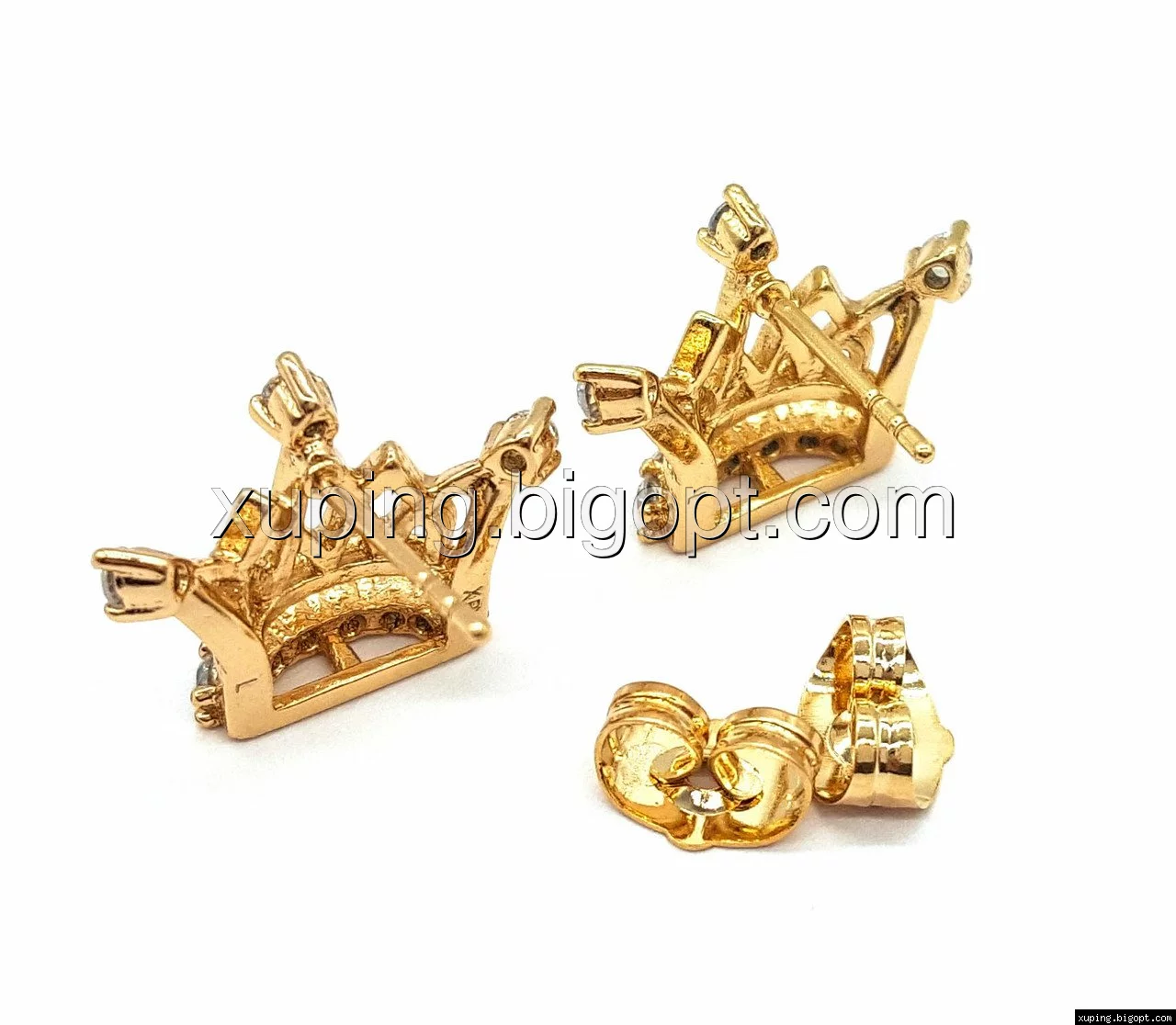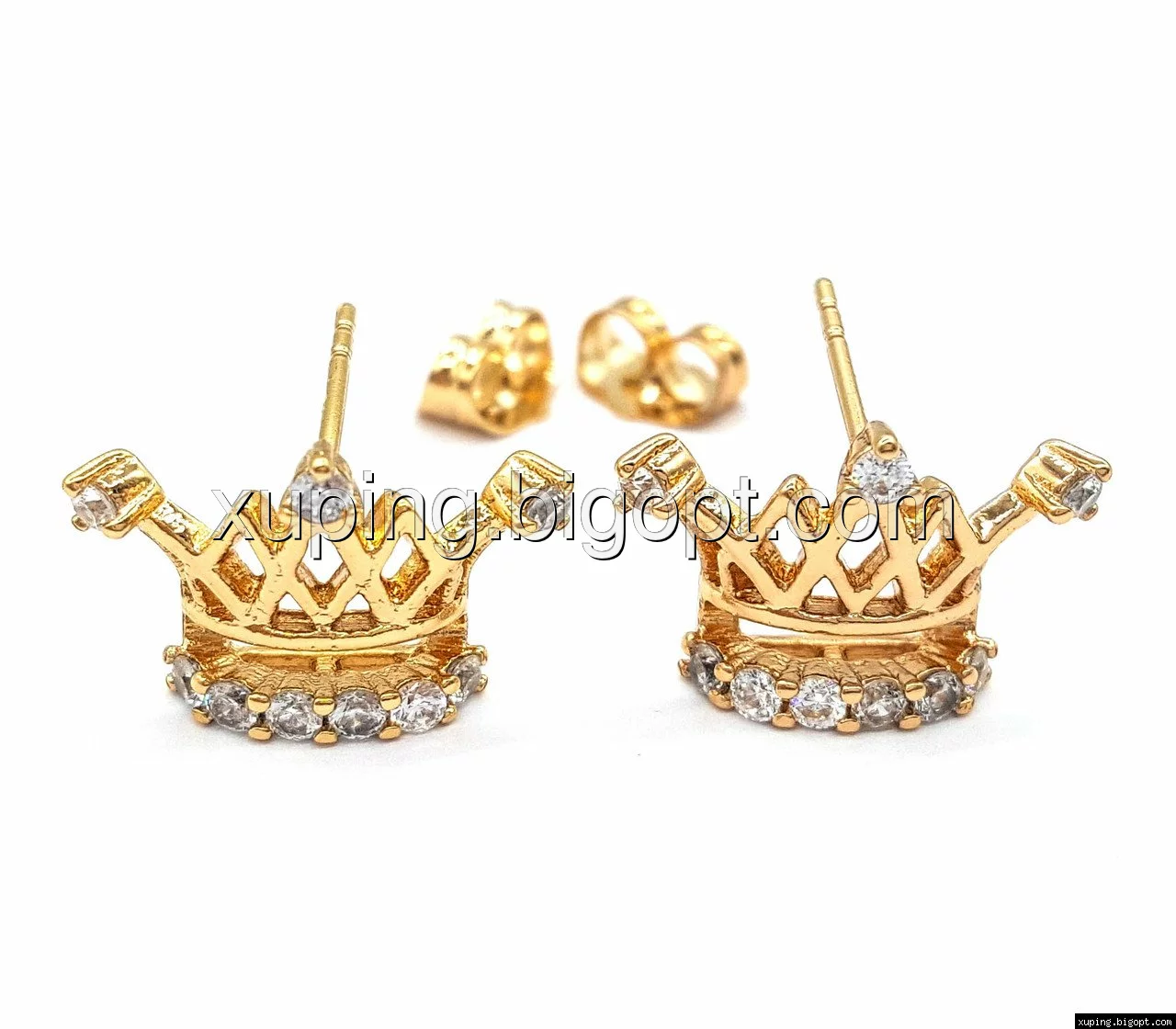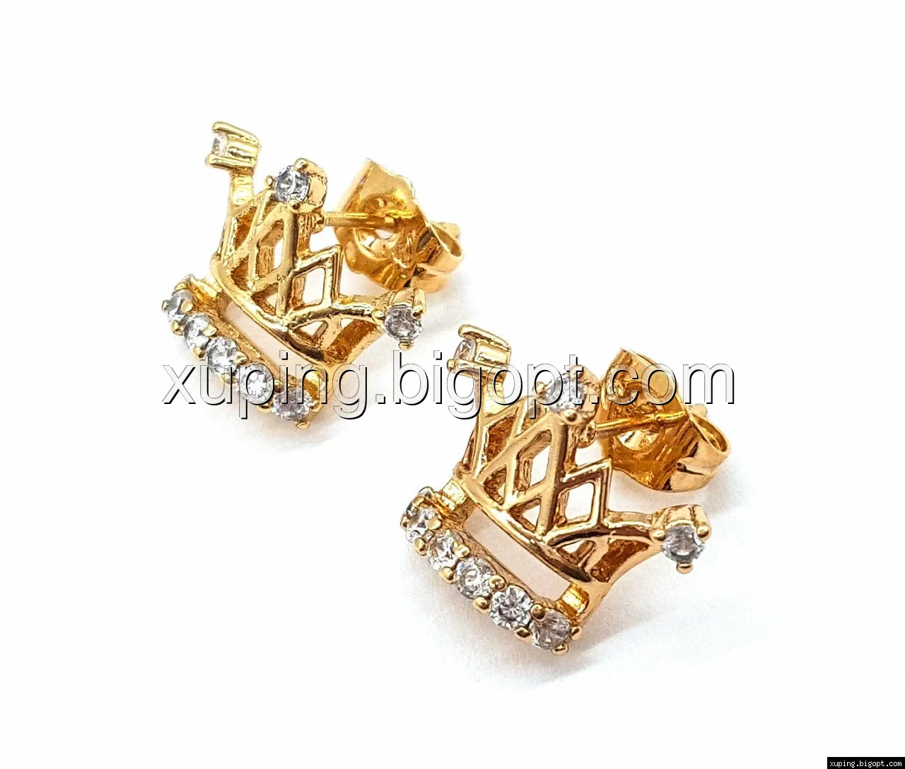 Серьги гвоздики, Ажурная Корона, с камнями, позолота