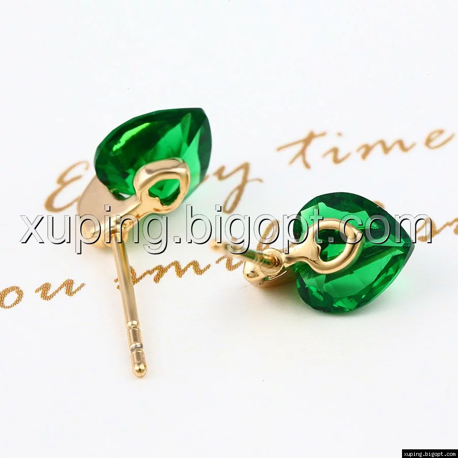 Серьги гвоздики, Зеленое Сердце с циркония, позолота