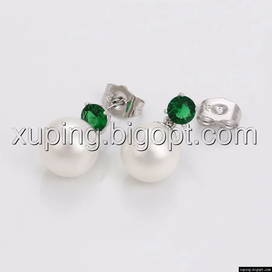 Серьги гвоздики, Жемчужина с зеленым цирконием, родий