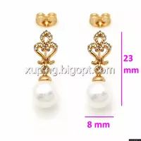 Серьги гвоздики, Жемчужина с Короной, россыпь камней, позолота