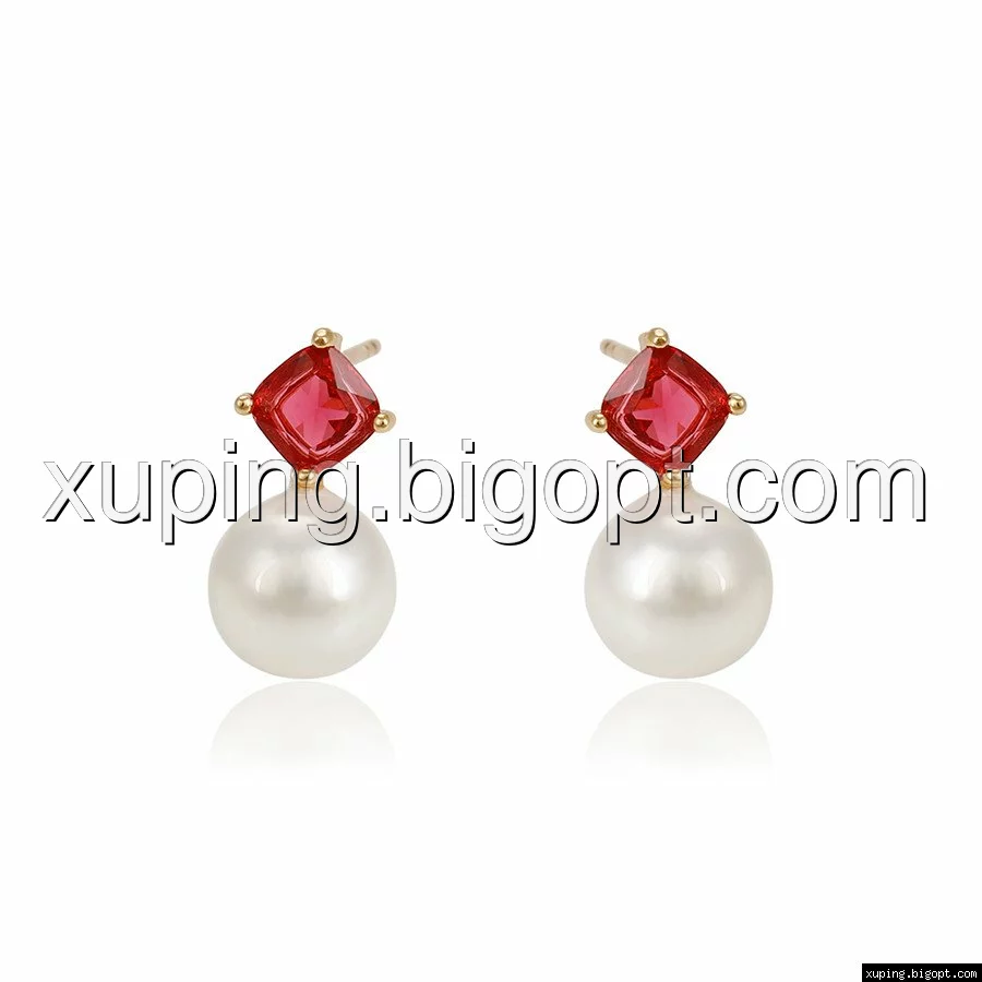 Серьги гвоздики, Жемчужина с красным цирконием, позолота
