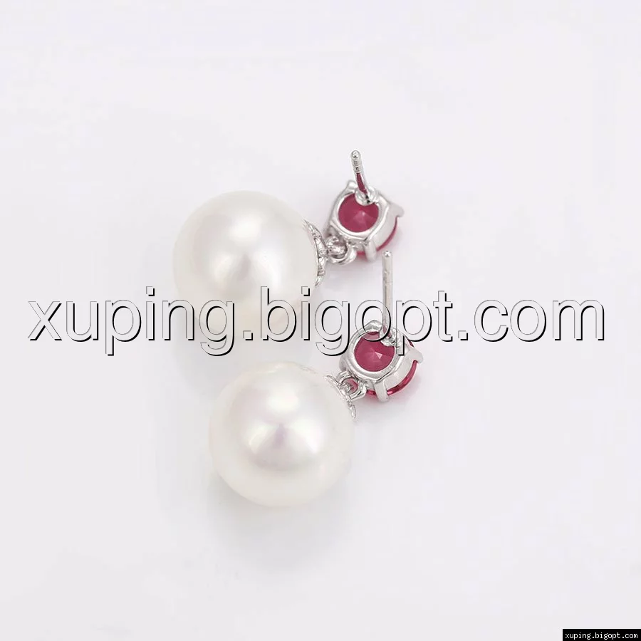 Серьги гвоздики, Жемчужина с рубиновым цирконием, родий