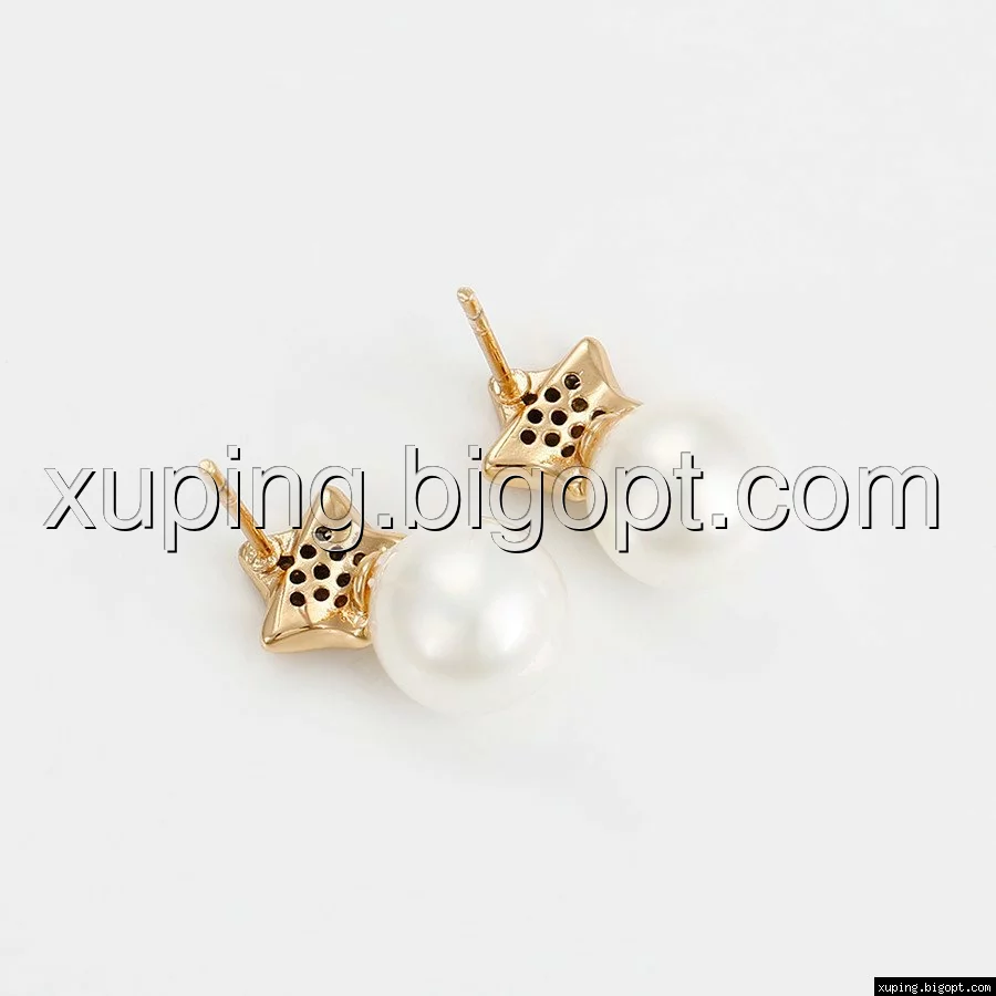 Серьги гвоздики, Жемчужина со звездочкой, позолота