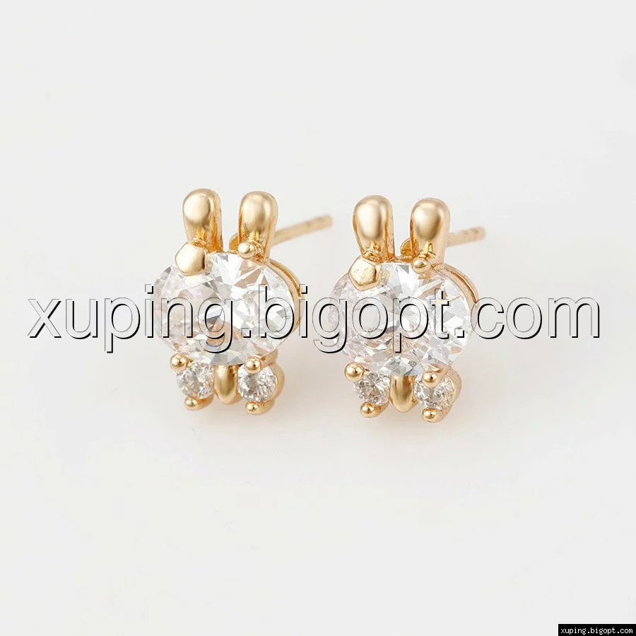 Серьги гвоздики, Зайченок, с цирконием, позолота