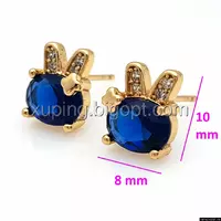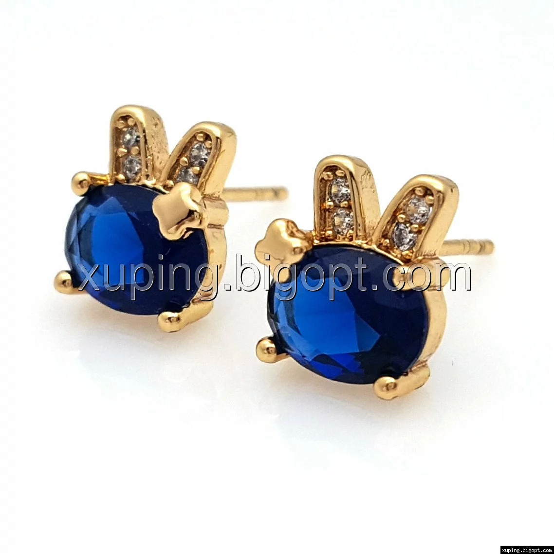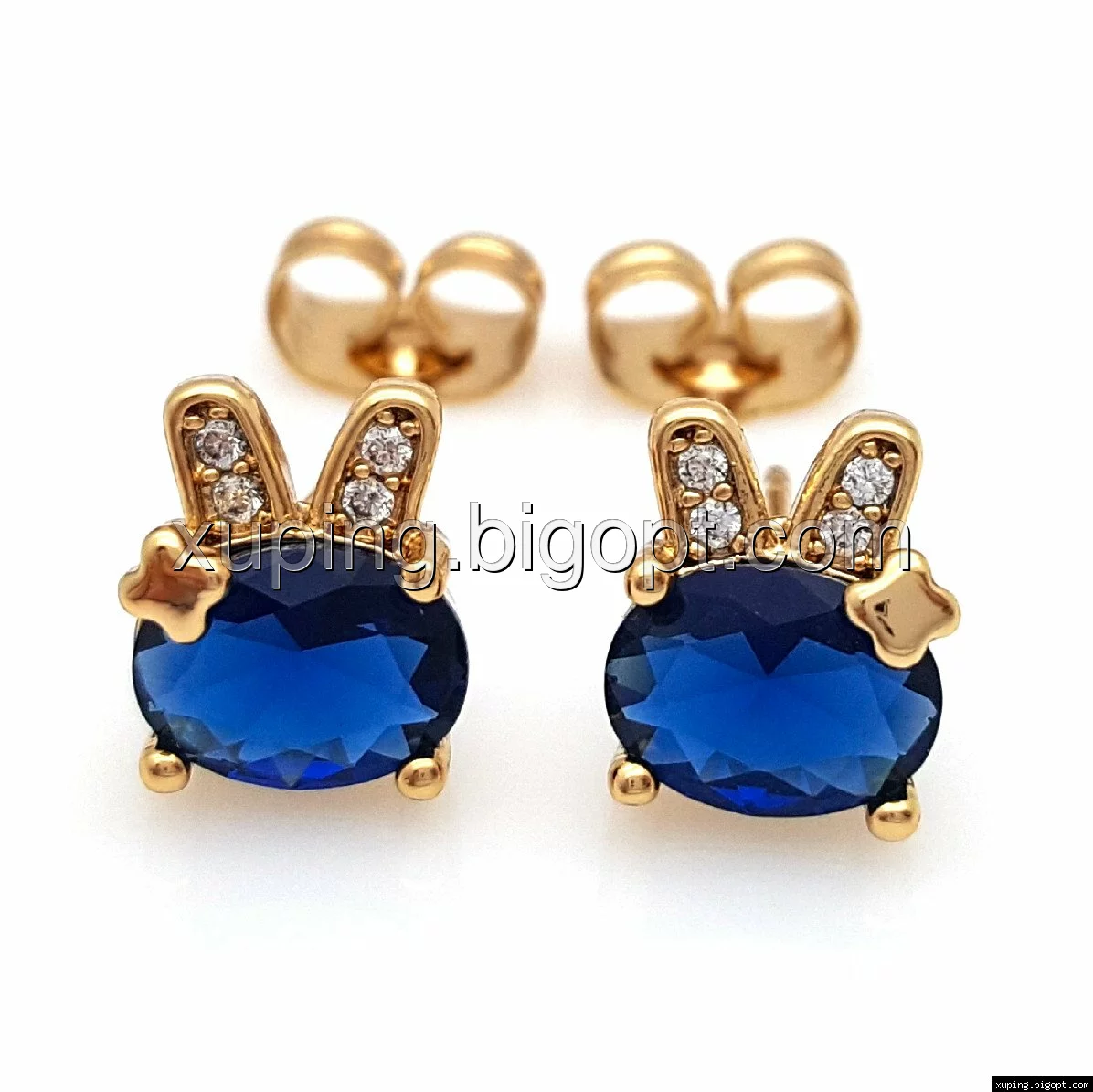 Серьги гвоздики, Зайченок с синим цирконием, позолота