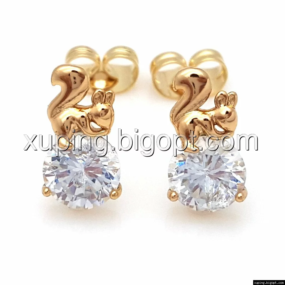 Серьги гвоздики, Белочка с цирконием, позолота
