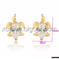 Серьги гвоздики, Черепашка с цирконием, позолота