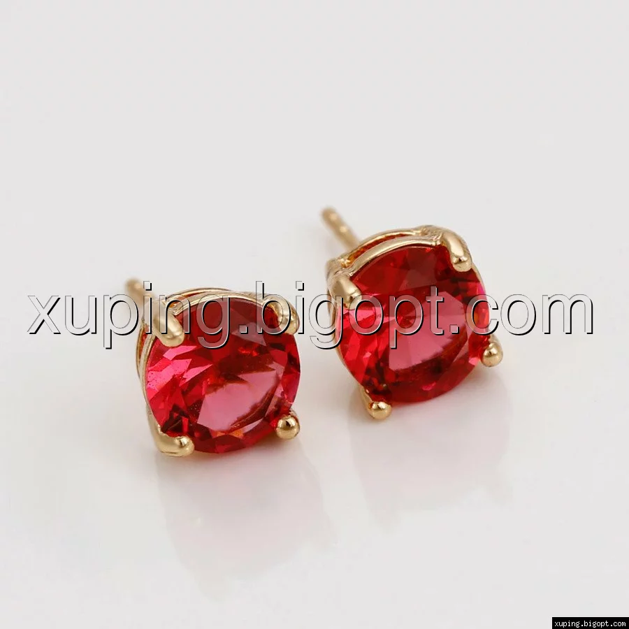 Серьги гвоздики, Красный цирконий, позолота