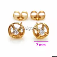 Серьги гвоздики, Мельница, с цирконием, позолота
