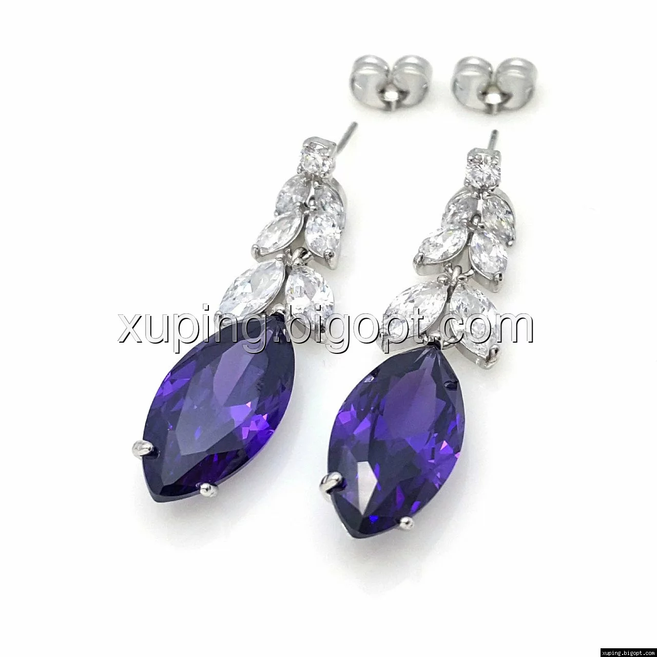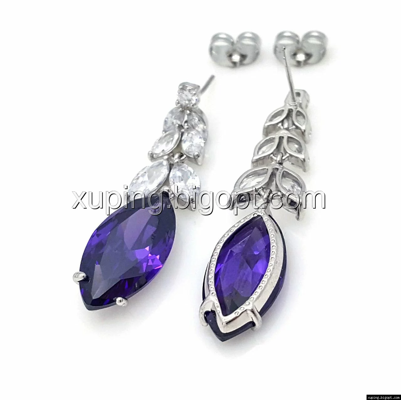 Серьги гвоздики, Нарядные с фиолетовым цирконием, родий