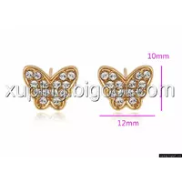 Серьги гвоздики, Бабочка с россыпью циркония, позолота