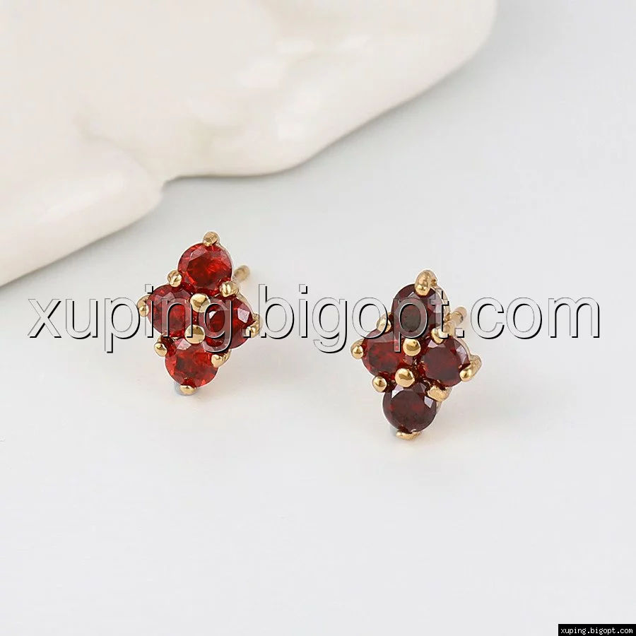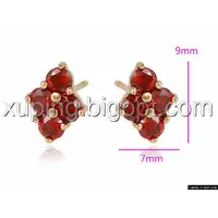 Серьги гвоздики, Ромб с красным цирконием, позолота