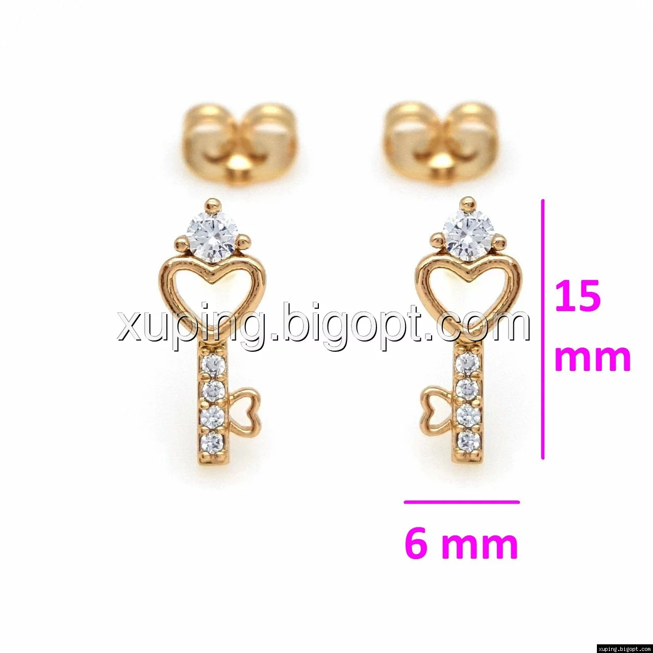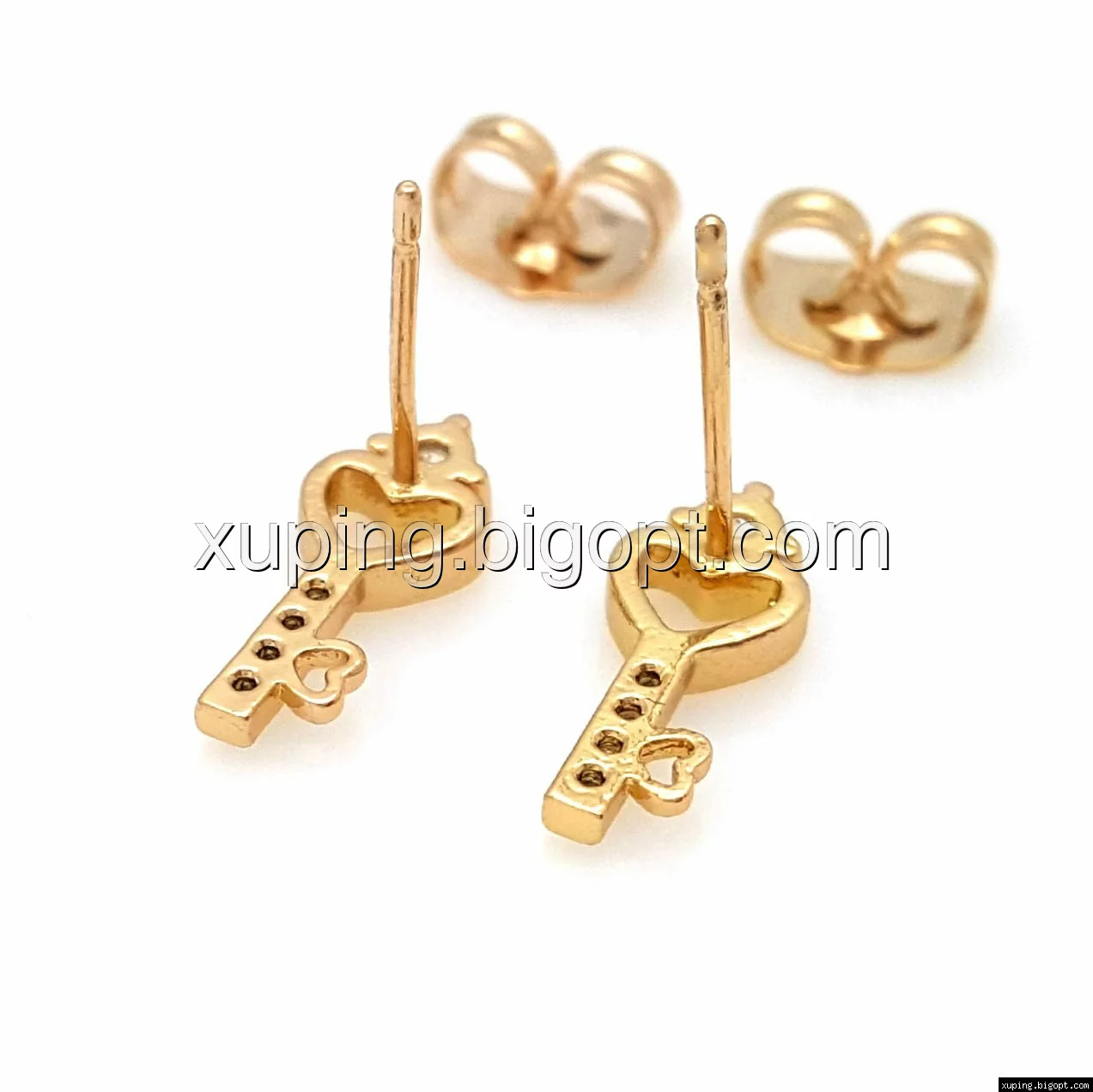 Серьги гвоздики, Золотой Ключик, с цирконием, позолота Xuping