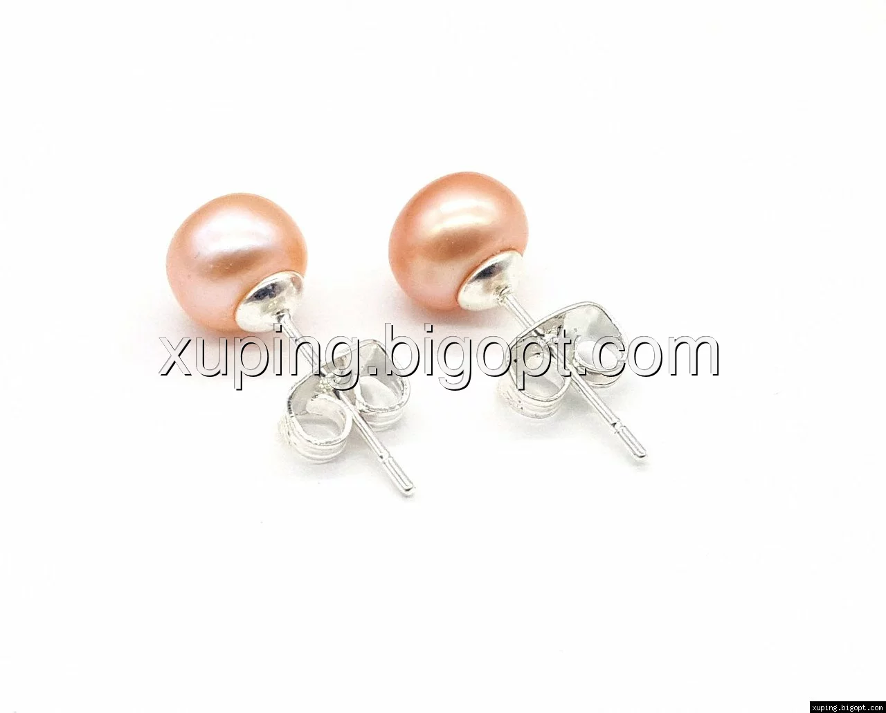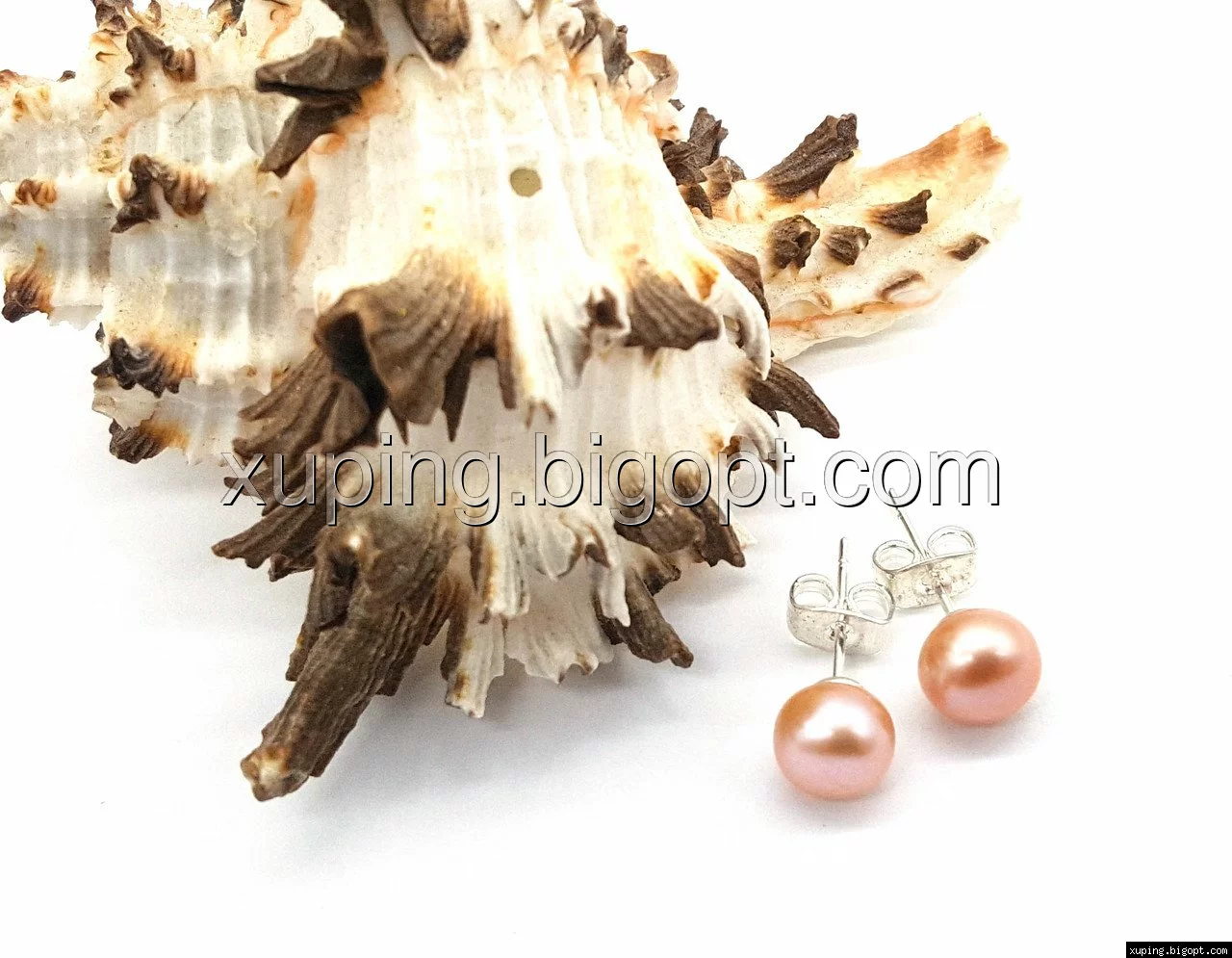 Серьги гвоздики, Розовая натуральная Жемчужина, 7мм, родий