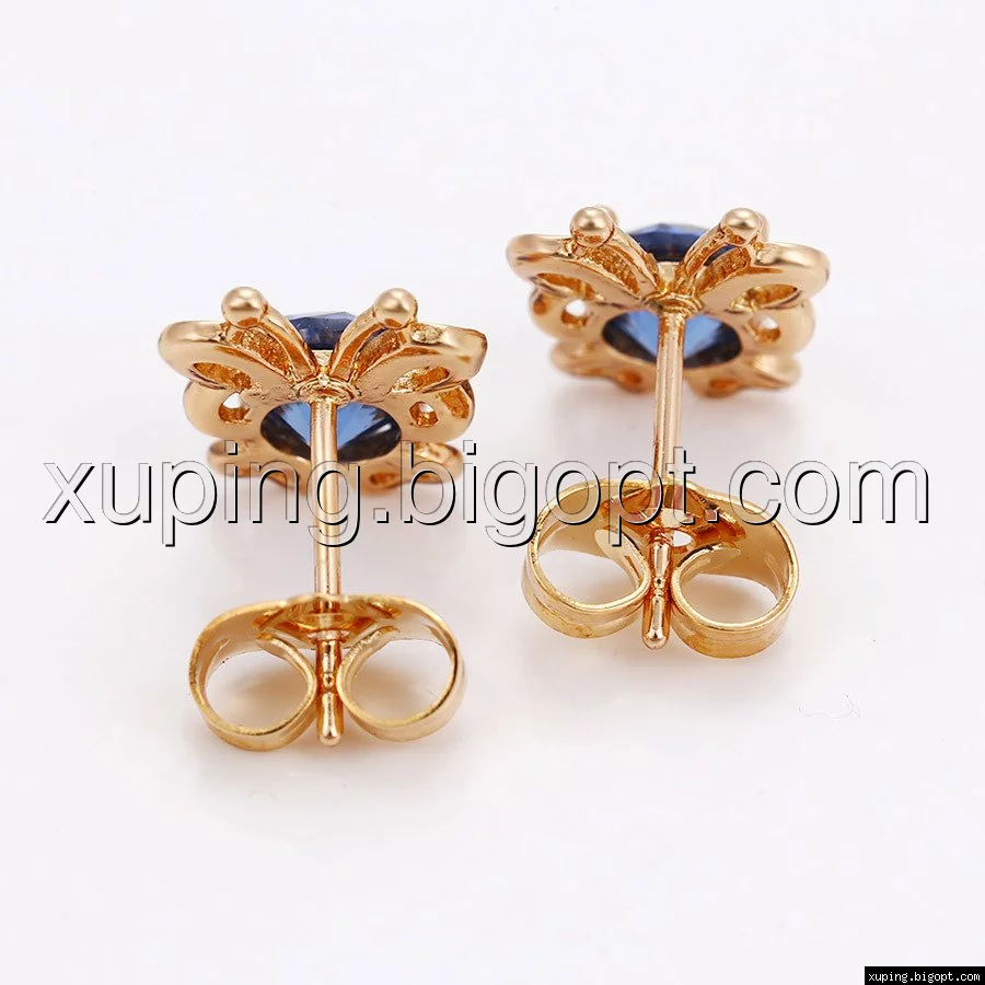 Серьги гвоздики позолоченные, Бабочка с синим цирконием