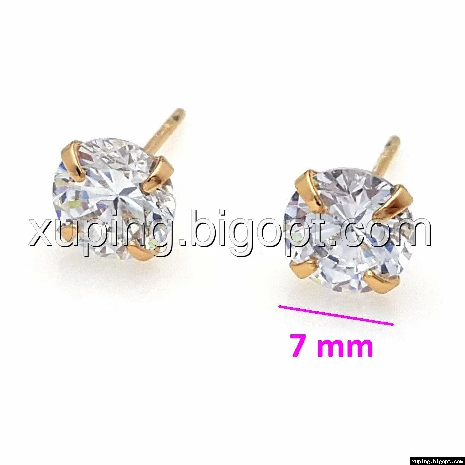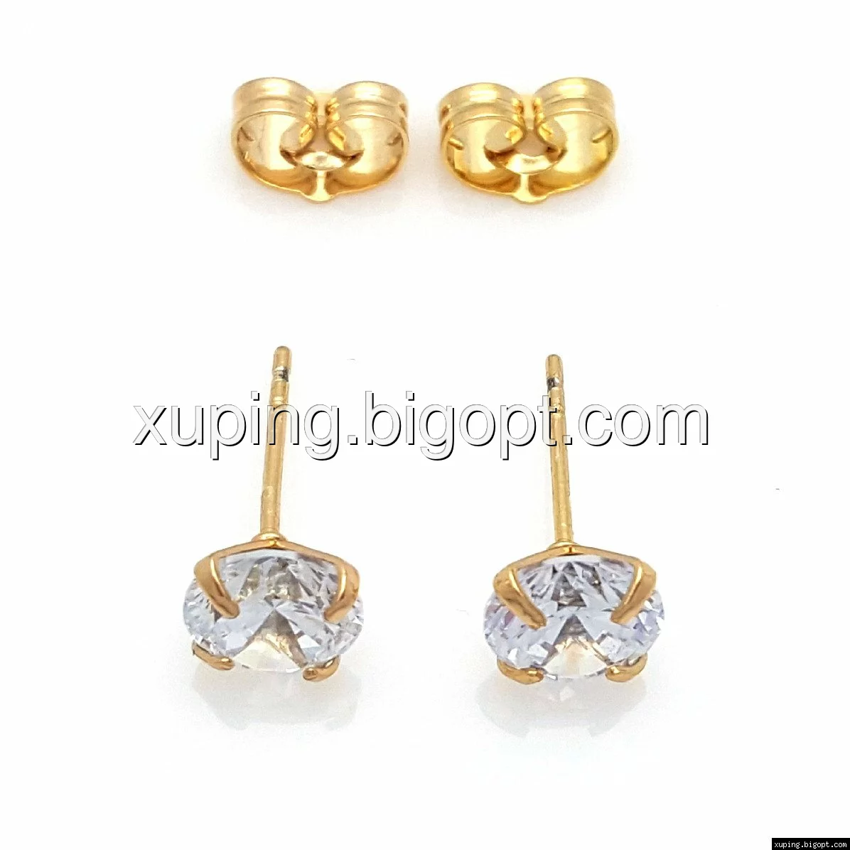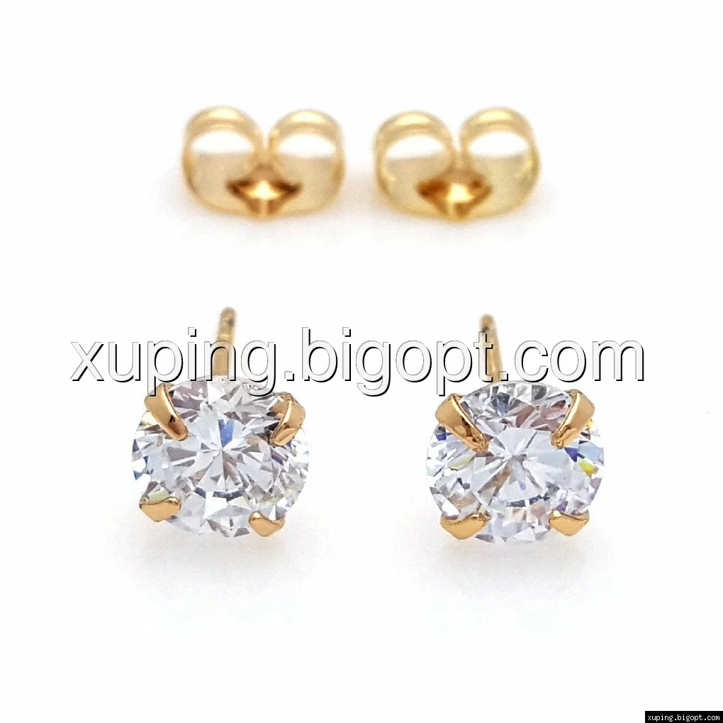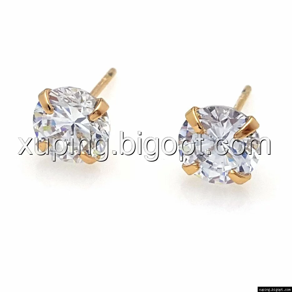 Серьги гвоздики, Прозрачный цирконий, позолота Xuping