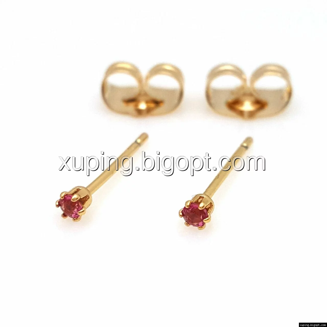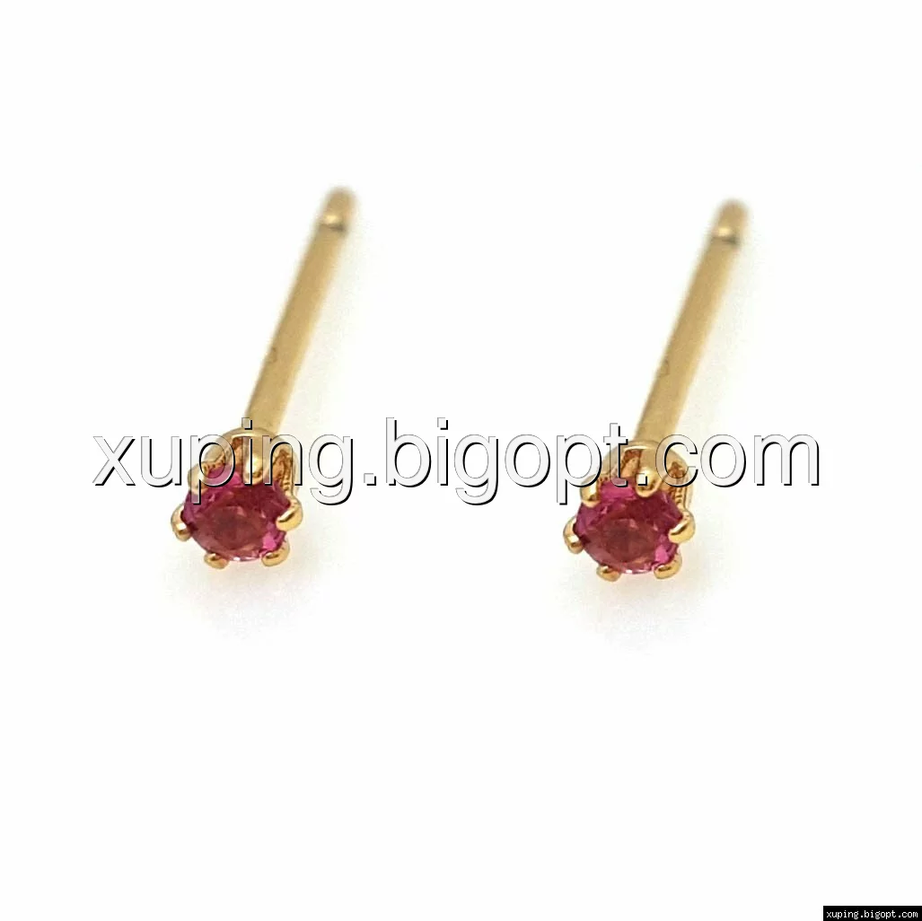 Серьги гвоздики, с красным цирконием, позолота Xuping