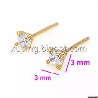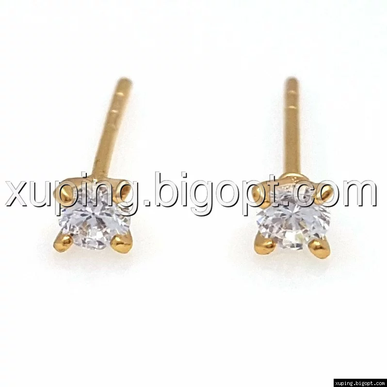 Серьги гвоздики, с прозрачным цирконием, позолота