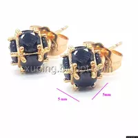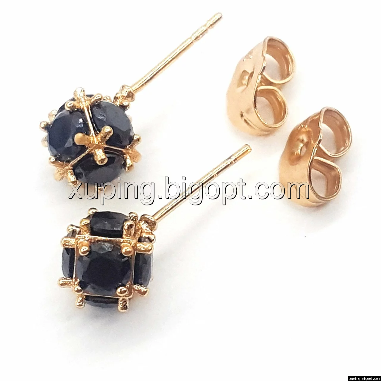 Серьги гвоздики, Сфера с черным цирконием, позолота