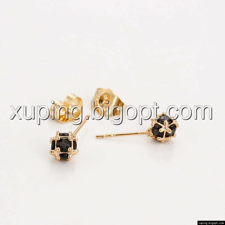 Серьги гвоздики, Сфера с черным цирконием, позолота