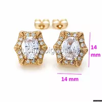 Серьги гвоздики, Шестигранная Звездочка, с камнями, позолота Xuping