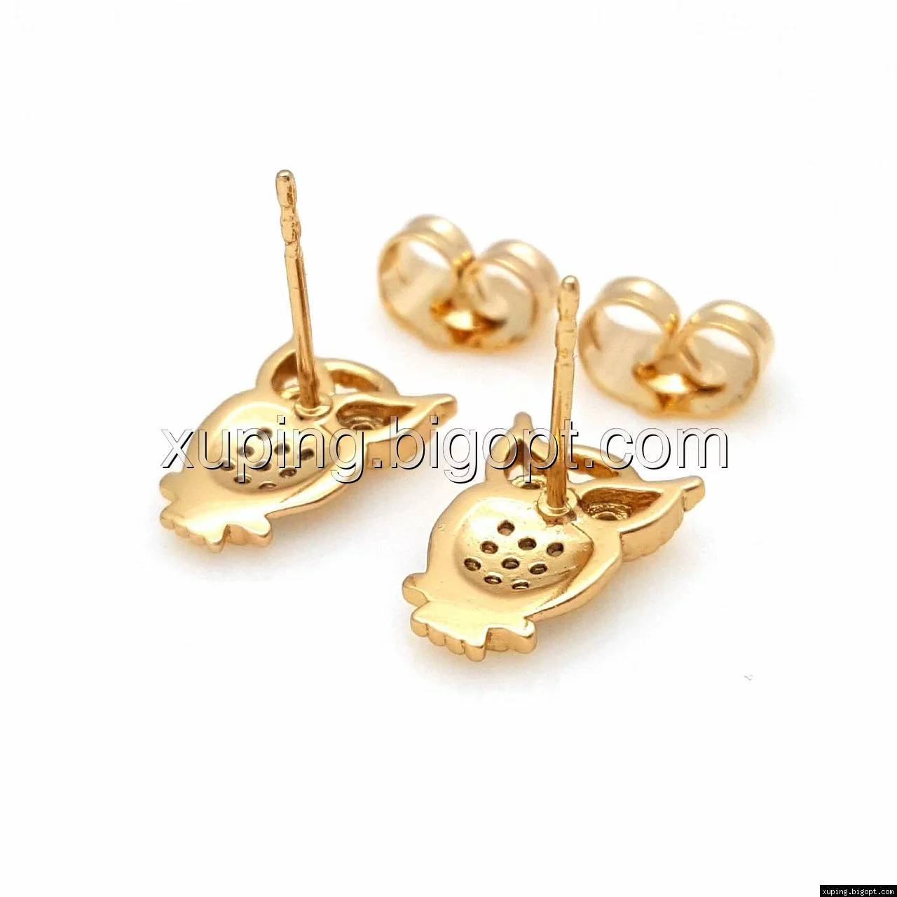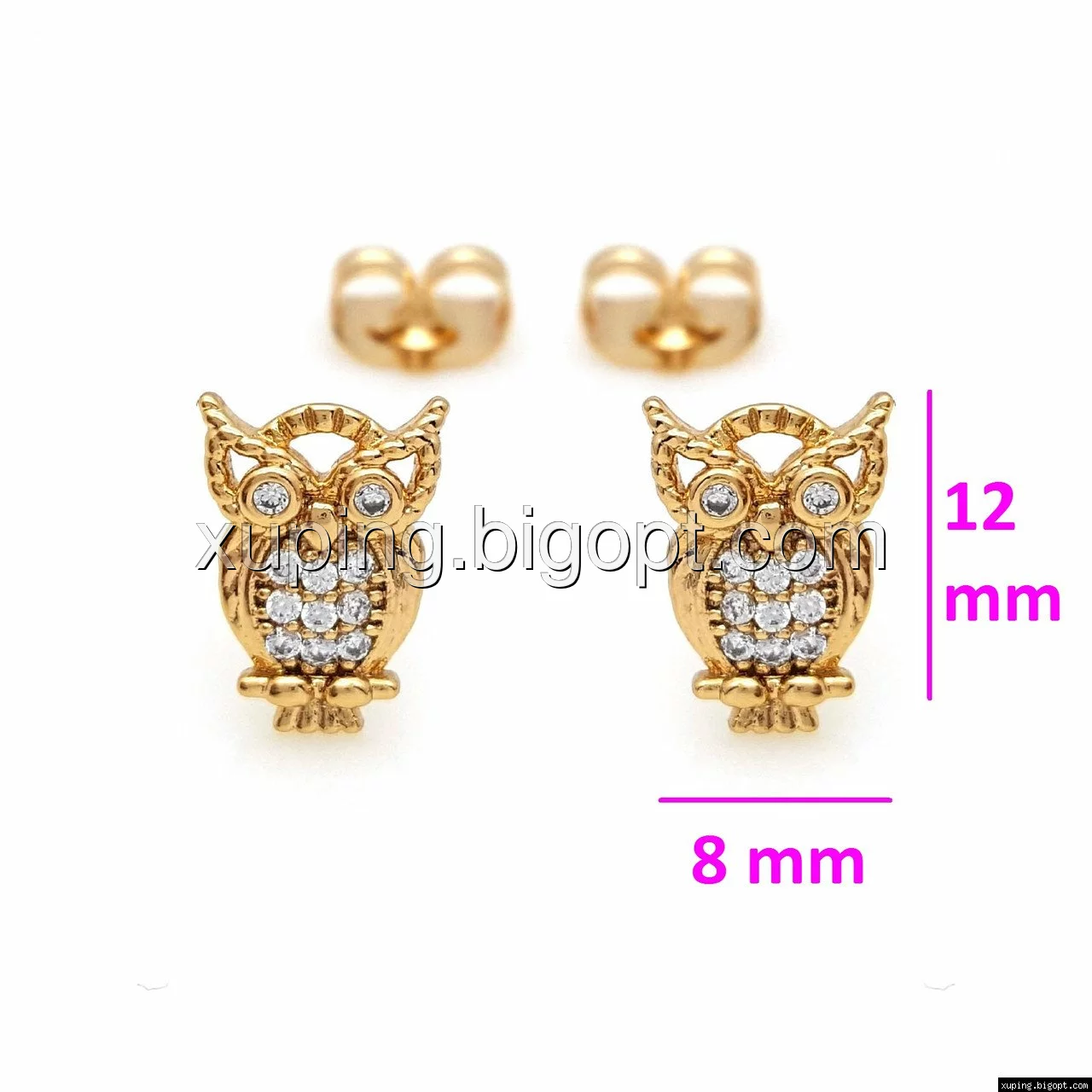 Серьги гвоздики, Совушка с камнями, позолота Xuping