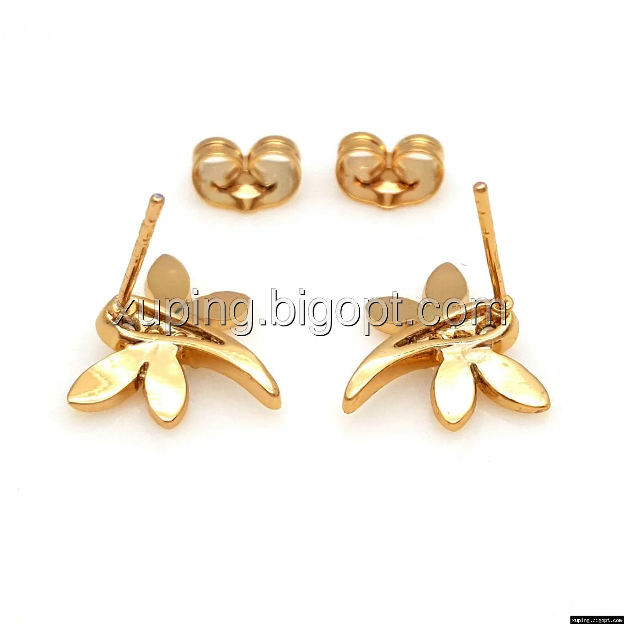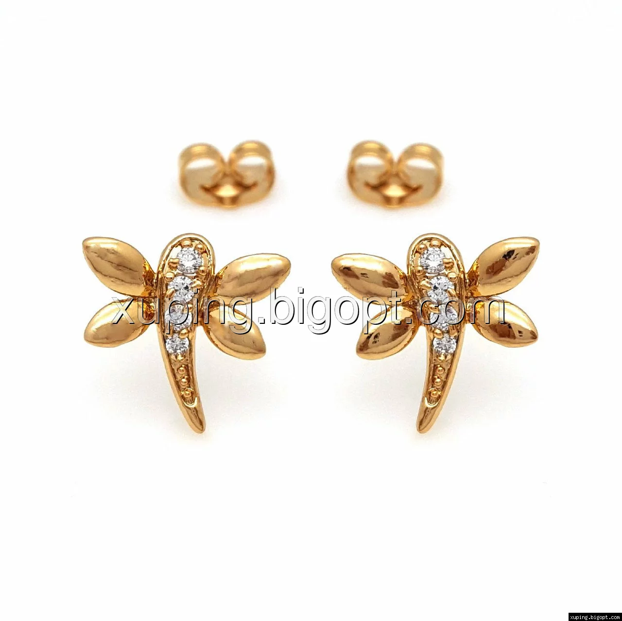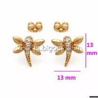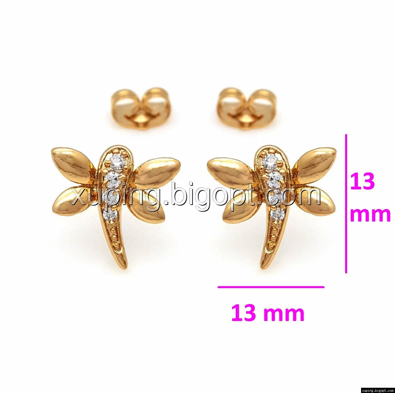 Серьги гвоздики, Стрекоза с цирконием, позолота Xuping