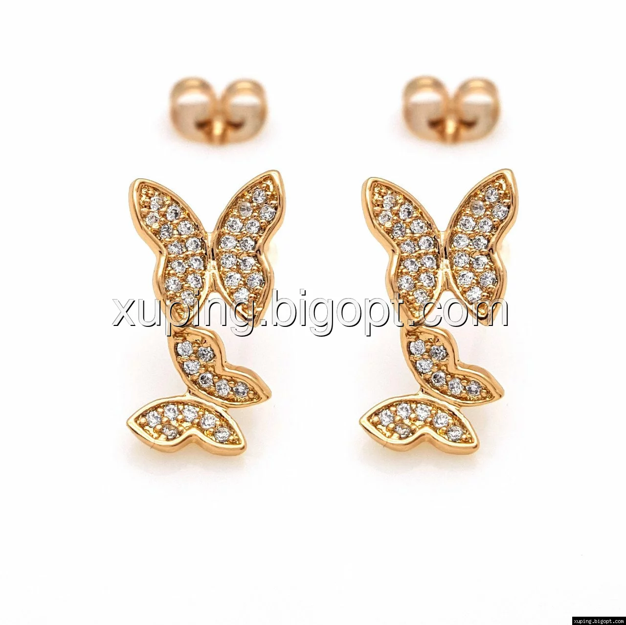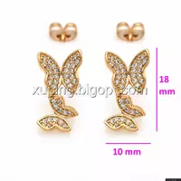 Серьги гвоздики, Два Мотылька в россыпи камней, позолота Xuping