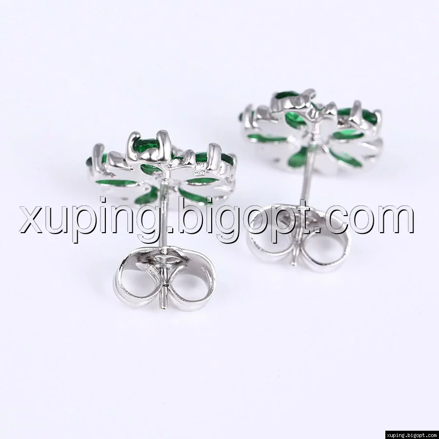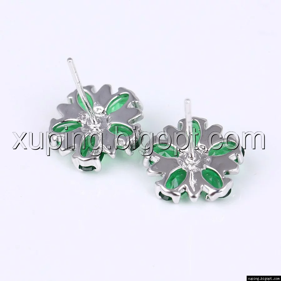 Серьги гвоздики, Цветок с зеленым цирконием, родий
