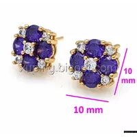 Серьги гвоздики, Цветок, с фиолетовым цирконием, позолота