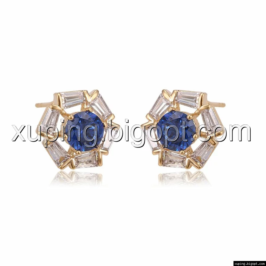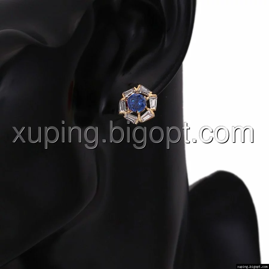 Серьги гвоздики, Цветок с синим цирконием, позолота
