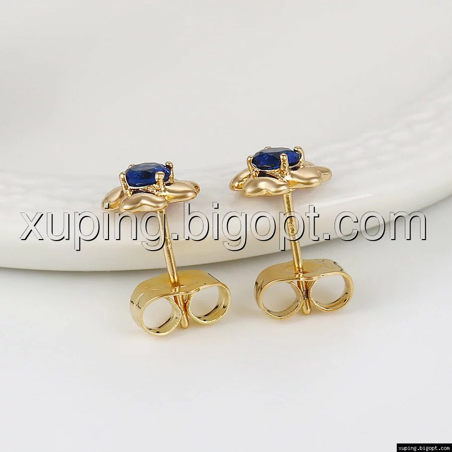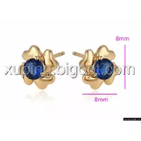 Серьги гвоздики, Цветок с синим цирконием, позолота
